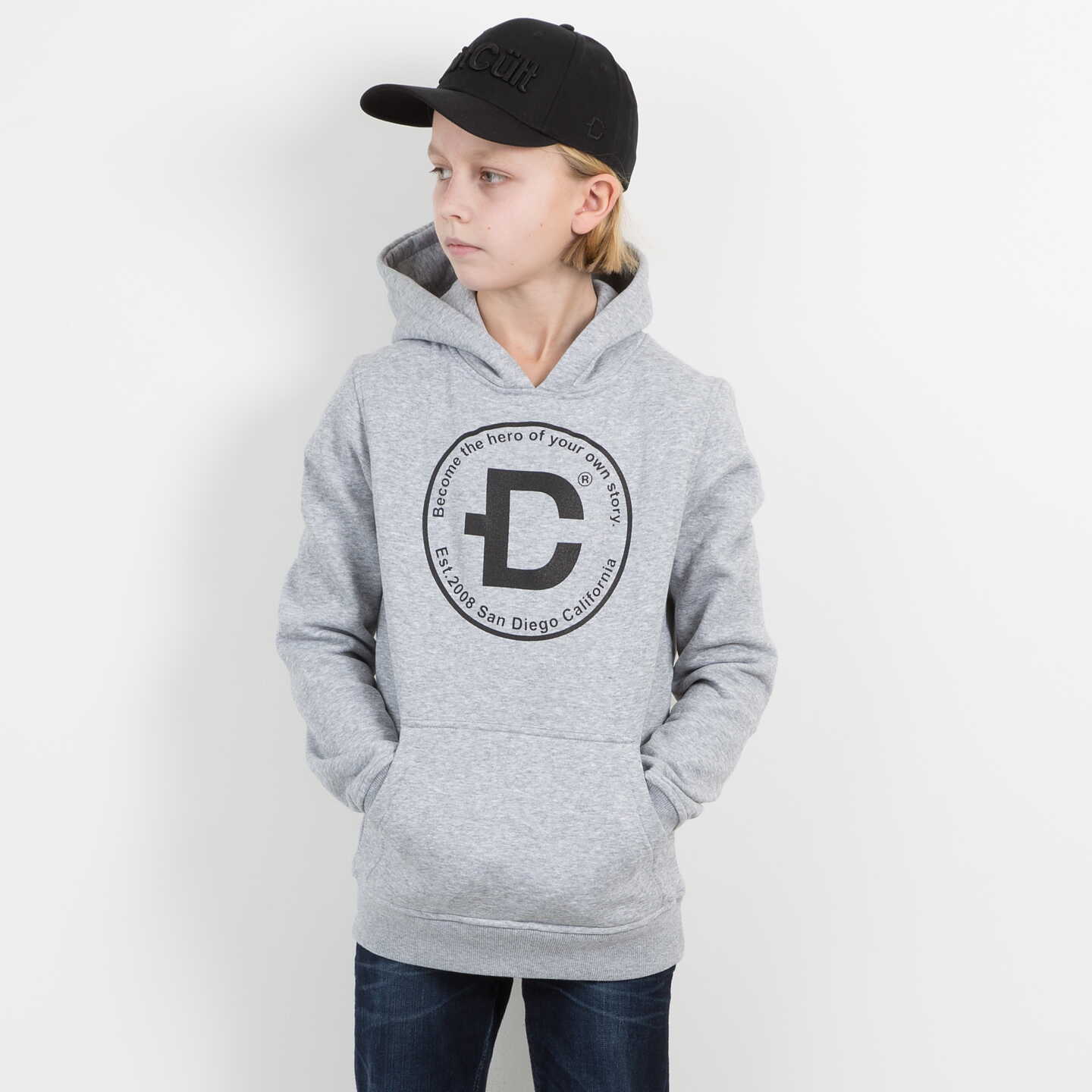 Klassisk DirtCult Hoodie finns nu i barnstorlekar! Skön passform och ett lika stilrent som hållfast tryck. Grå huvtröja med rund logo över bröstet.